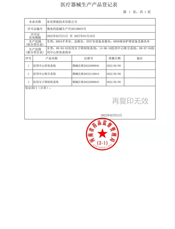 医疗器械注册证(医用中心供氧系统)