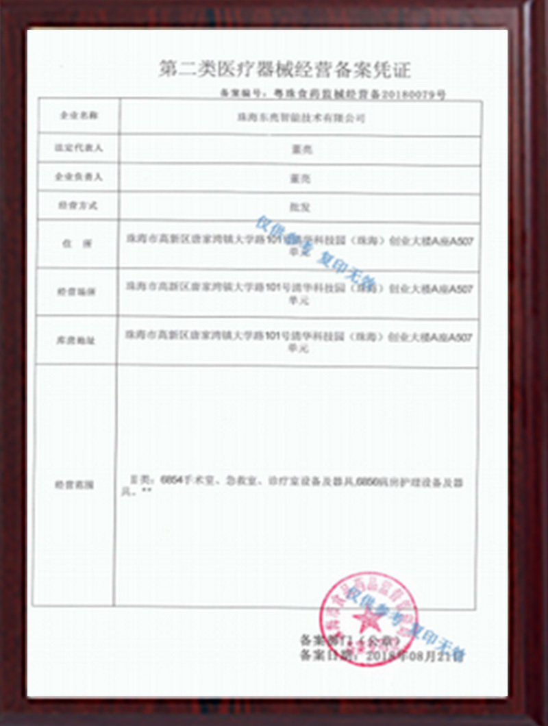 珠海第二类医疗器械经营备案凭证